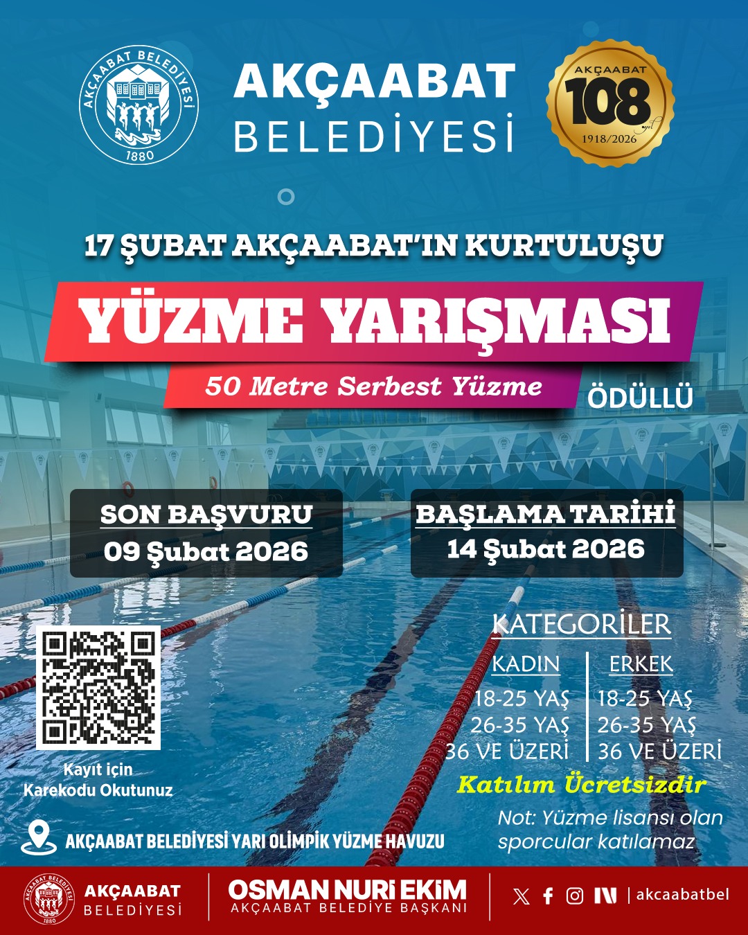17 ŞUBAT AKÇAABAT'IN KURTULUŞU ÖDÜLLÜ YÜZME YARIŞMASI 50 METRE SERBEST YÜZME BAŞVURU FORMU
