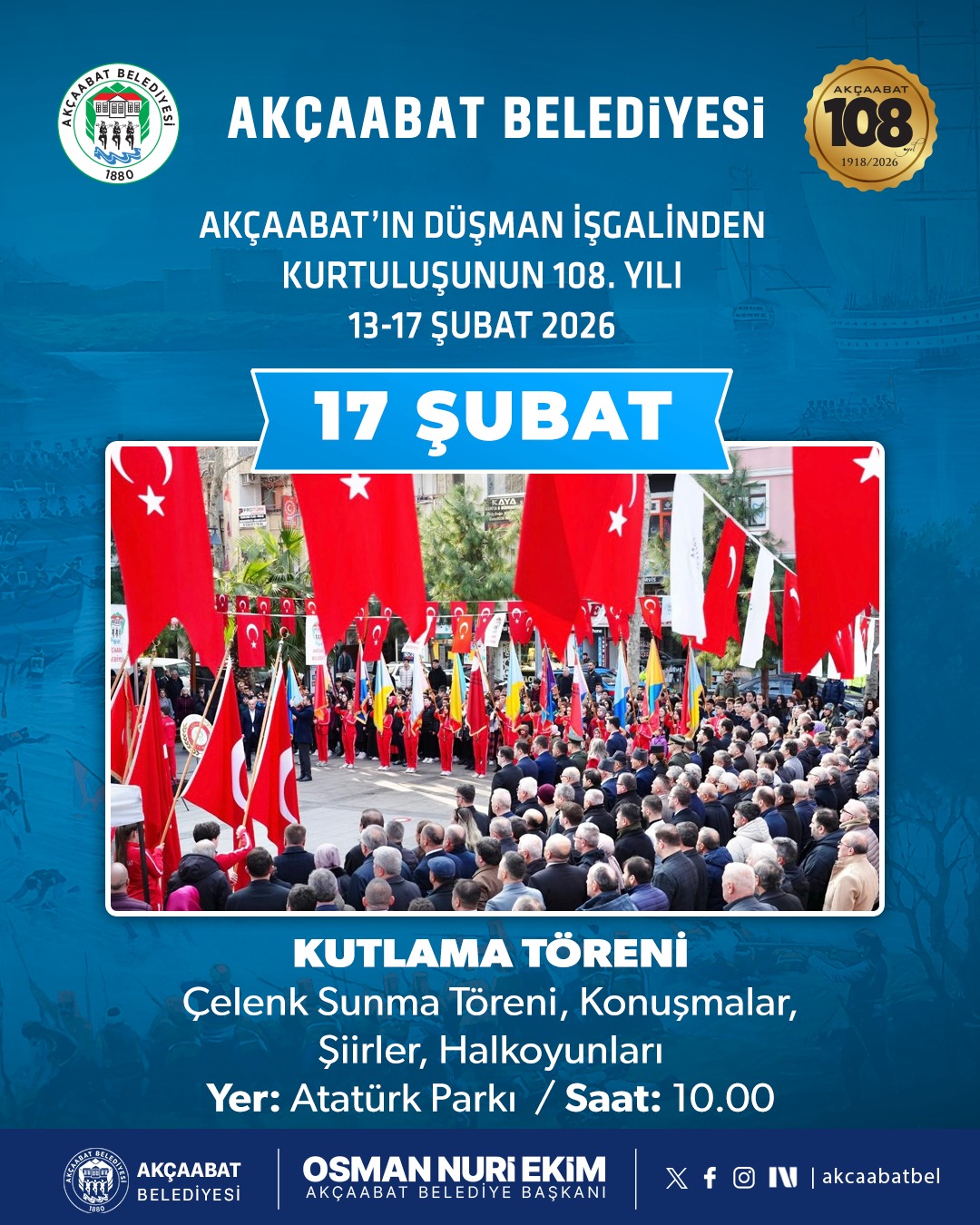Konuya ilişkin değerlendirmelerde bulunan Akçaabat Belediye Başkanı Osman Nuri Ekim, 17 Şubat’ın Akçaabat için taşıdığı tarihî öneme dikkat çekerek şu ifadeleri kullandı: “17 Şubat, Akçaabat’ımızın bağımsızlık ruhunun, birlik ve beraberliğinin en güçlü sembolüdür. Ecdadımızın büyük fedakârlıklarla kazandığı bu toprakların kıymetini bilmek ve kurtuluş mücadelemizi gelecek nesillere doğru şekilde aktarmak en önemli sorumluluğumuzdur.”
