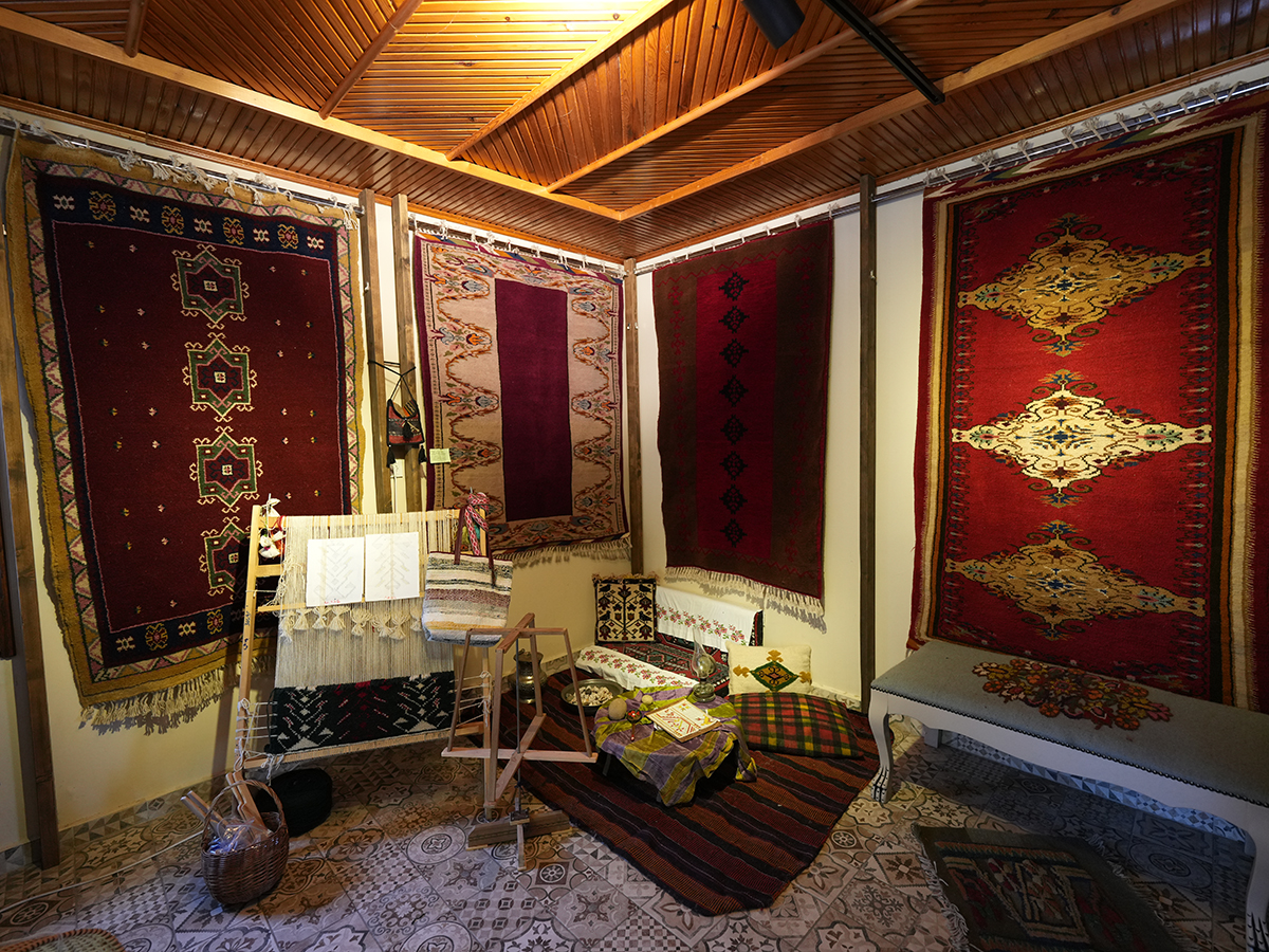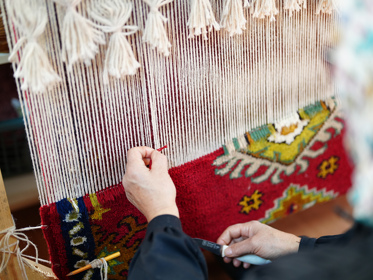 Akçaabat Belediyesi’nin destekleriyle sürdürülen kursta, usta öğreticiler eşliğinde halı ve kilim dokumayı öğrenen kursiyer kadınlar, ilmek ilmek dokudukları el emeği ürünleri satarak gelir elde ediyor.