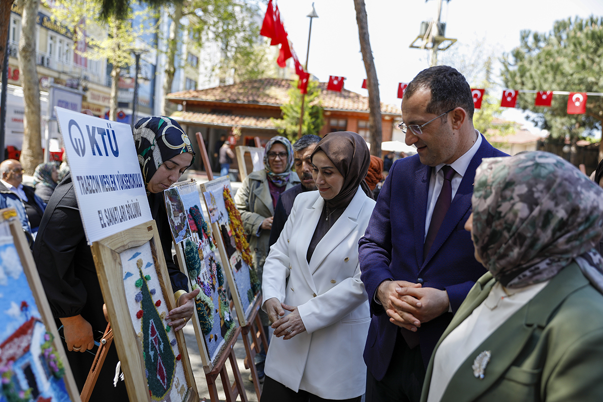 Etkinlik Atatürk Parkı’nda düzenlenen KTÜ Trabzon Meslek Yüksekokulu Dokuma Tablolar Sergisi ve yöresel ikram programı ile devam etti. Vatandaşlar sergiyi ilgiyle gezerek öğrencilerin çalışmalarını yakından inceleme fırsatı buldu.